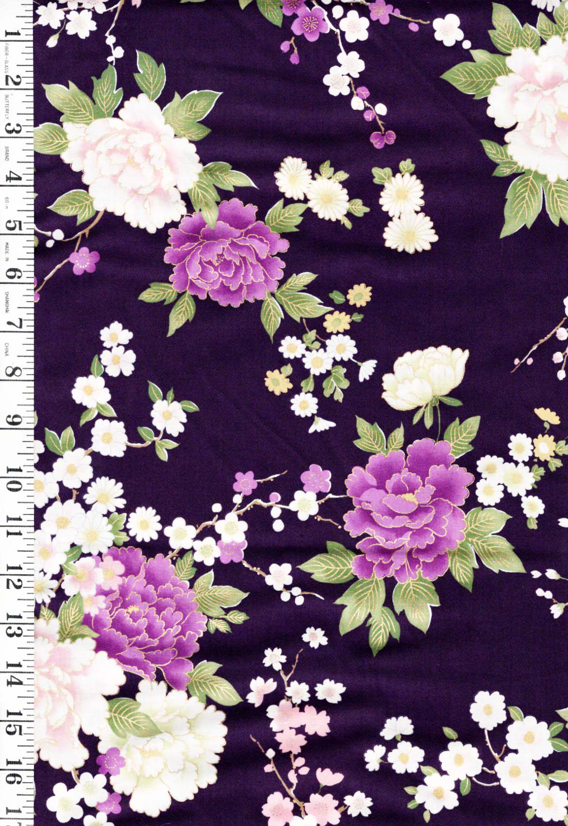 *Japanese - KOKKA - Colorful Peonies, Cherry Blossoms & Daisies - YGA-79070-2B - Purple - By the Half Yard - is currently on backorder. You may still purchase now though and we'll ship as soon as more become available.