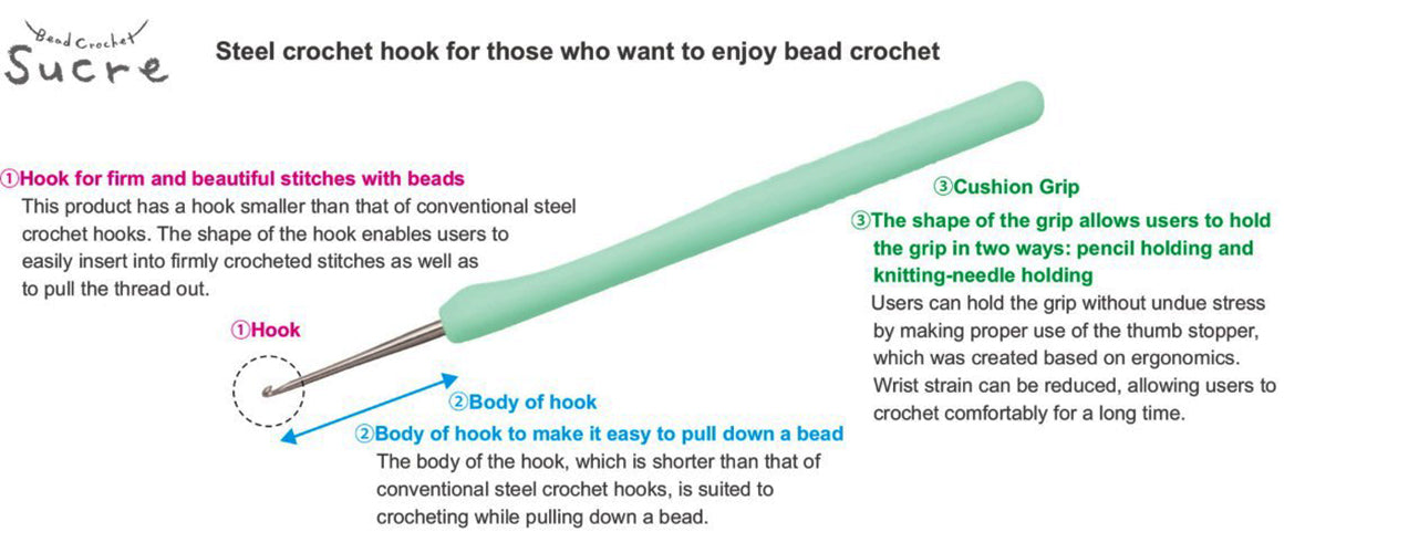 * Smooth hook tip - Perfect for bead and lace crochet,