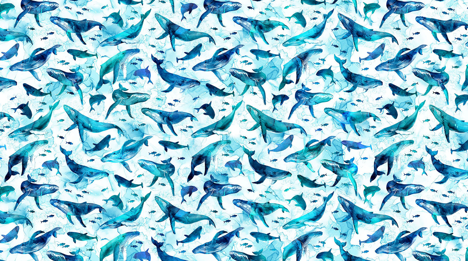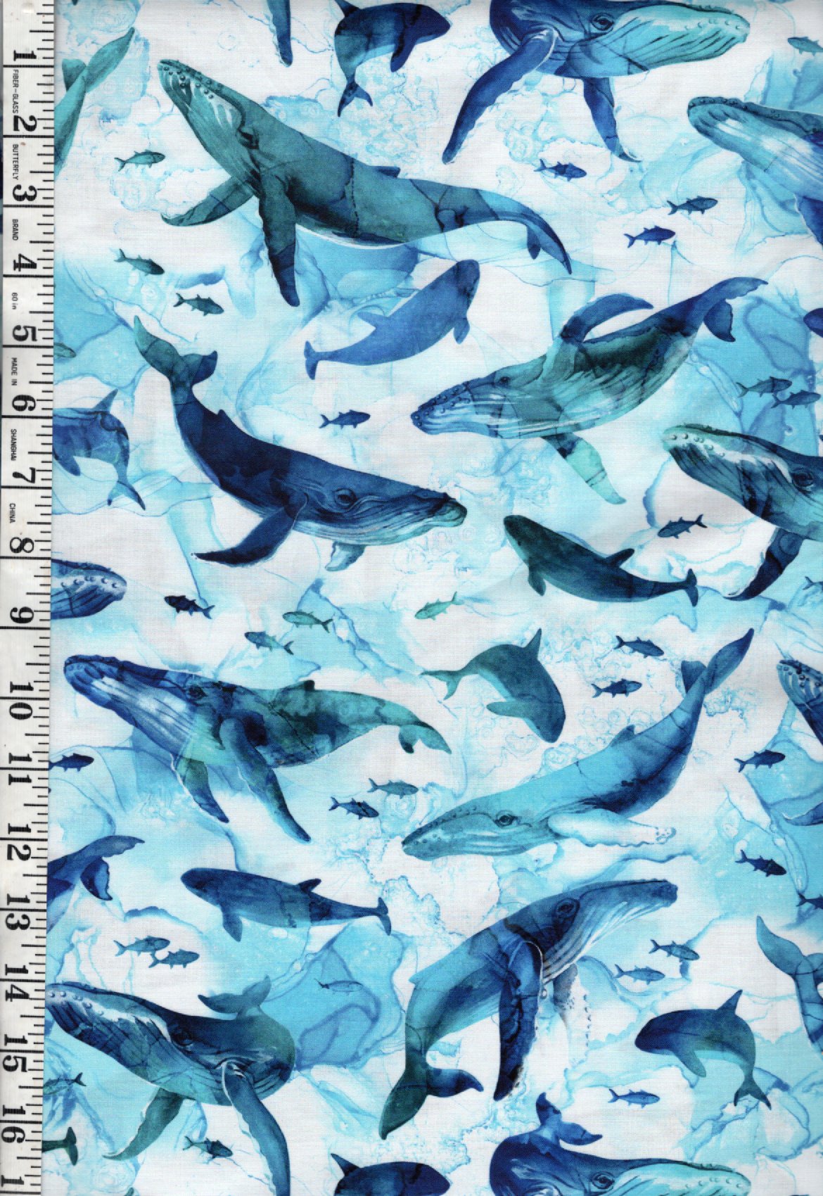 This stunning fabric from Northcott's Deep Blue collection features an over-all design of humpback whales and smaller fish.  Digitally printed.