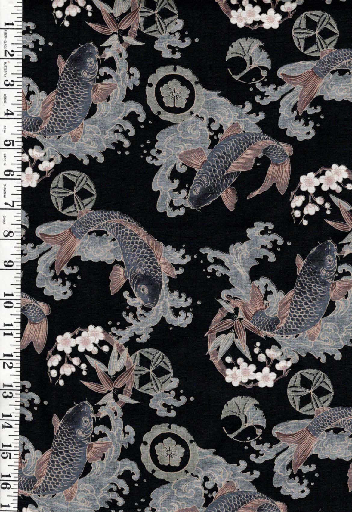 *Japanese - Kobayashi Carp, Crested Waves & Cherry Blossoms - Dobby Weave - Black - Last 1 1/8 yards - is currently on backorder. You may still purchase now though and we'll ship as soon as more become available.