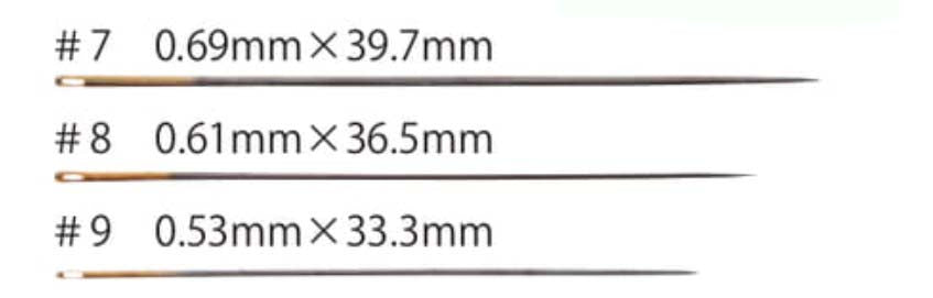 Tulip offers 3 sizes of Sharp sewing needles.  In this assortment, you'll receive:
