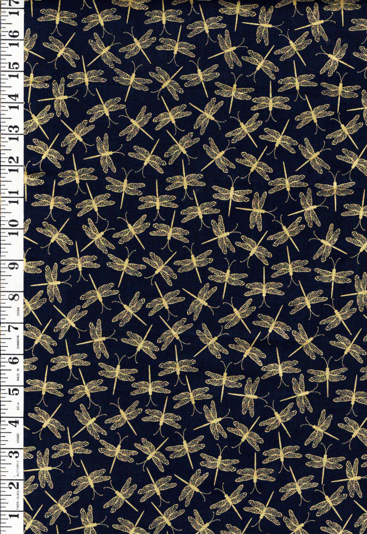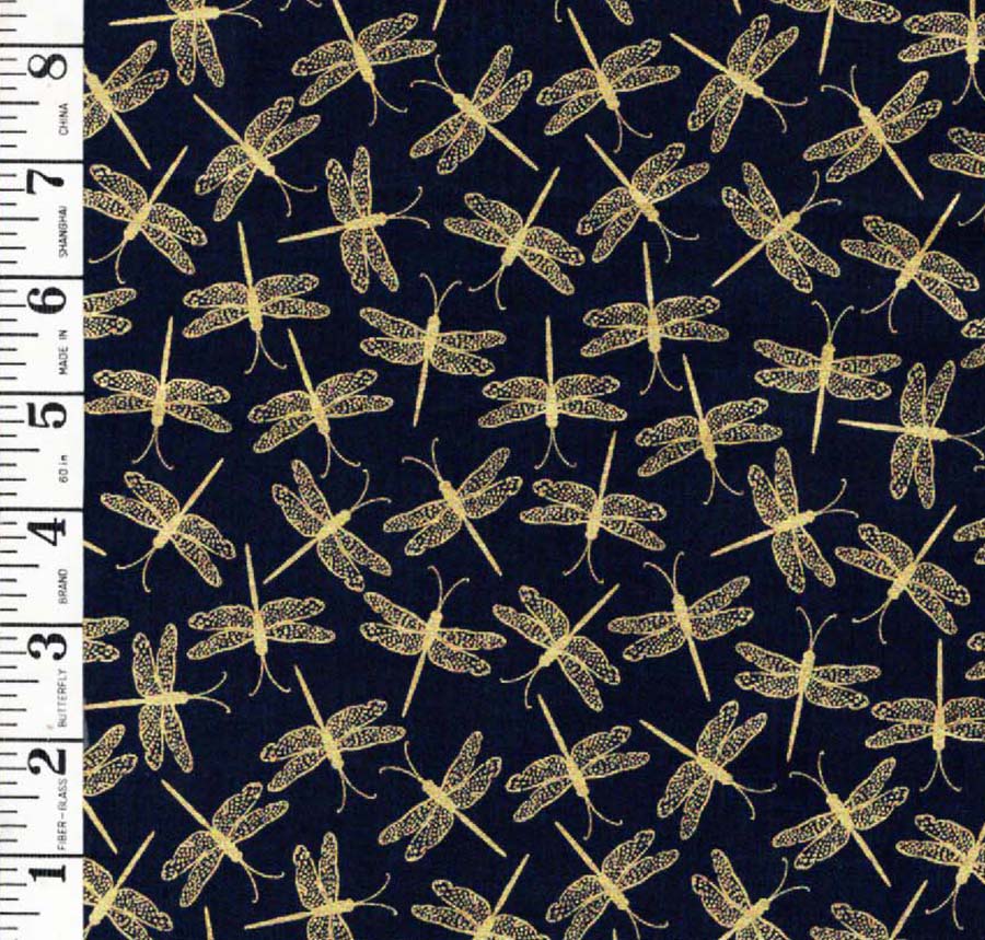 Asian - Dragonfly Serenade - Small Gold Metallic Dragonflies - Navy - Last 2/3 yards - is currently on backorder. You may still purchase now though and we'll ship as soon as more become available.