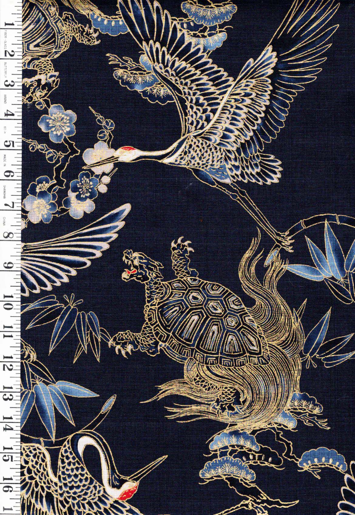 From Hokkoh of Japan, this stunning dobby weave fabric features two auspicious symbols of Japanese culture. The crane or tsuru, which represents loyalty, longevity and fidelity. The turtle, which also represents longevity, wisdom, and good fortune. Both are deeply embedded in Japanese folklore, art and mythology.