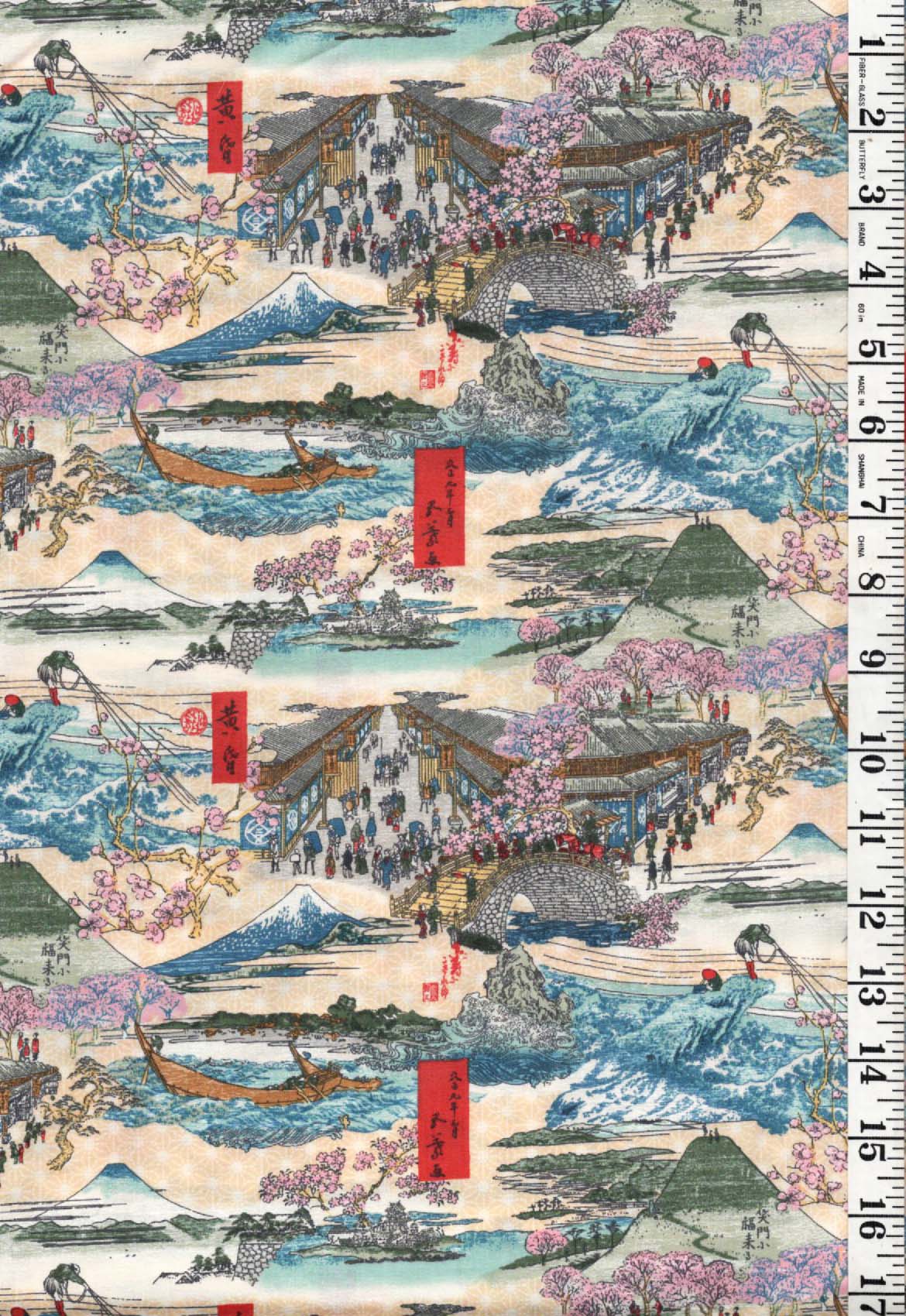 Japanese - Kokka Scenic Japanese Countryside with Mt. Fuji - Last 2 1/2 yards - is currently on backorder. You may still purchase now though and we'll ship as soon as more become available.